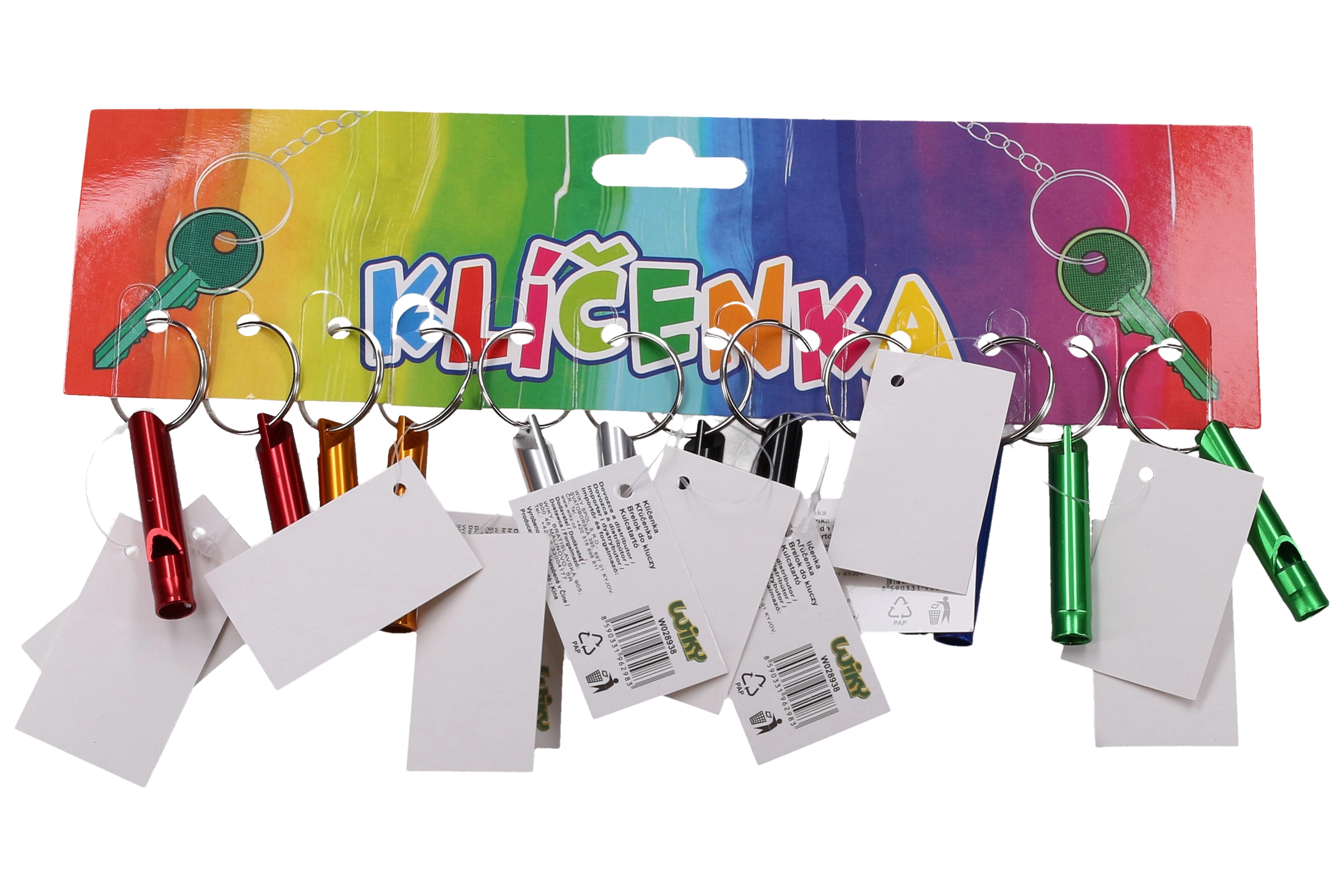 Breloc practic cu fluier colorat cu lungimea de 4,5 cm, ideal ca accesoriu pentru chei, rucsac sau geantă. Oferă un sunet de semnal rapid pentru siguranță sporită, orientare și distracție.