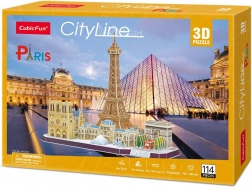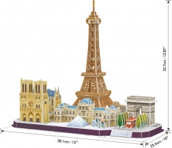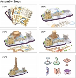 Puzzle 3D City Line Paris este o distracție captivantă pentru copii și adulți. Pachetul conține 114 piese de puzzle, realizate dintr-un material special asemănător spumei. Piesele sunt numerotate, decupate și așezate pe coli. Pur și simplu împingeți piesele din coală fără a folosi forță și asamblați-le urmând instrucțiunile incluse, fără a utiliza adeziv sau unelte speciale.