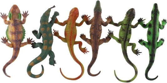 Acest set conține 12 șopârle colorate, prevăzute cu ventuză pe partea inferioară, permițând fixarea lor pe sticlă, faianță sau alte suprafețe netede. Fiecare șopârlă are o lungime de 22 cm, asigurând o manipulare ușoară pentru copii. Joaca cu acest set stimulează creativitatea, motricitatea fină și oferă, totodată, distracție și cunoștințe despre natură.