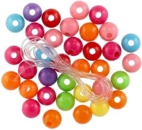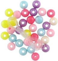 Mărgele din plastic colorate cu șnur, 2 culori, în săculeț 6,5x11x1 cm