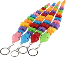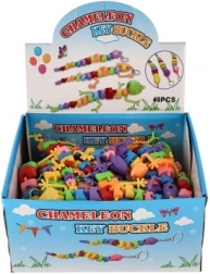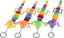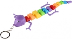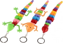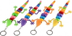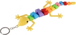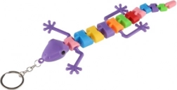 Se atașează ușor la chei sau rucsac datorită inelului metalic. Disponibilă într-un mix variat de culori și forme (șopârlă/cameleon/șarpe).