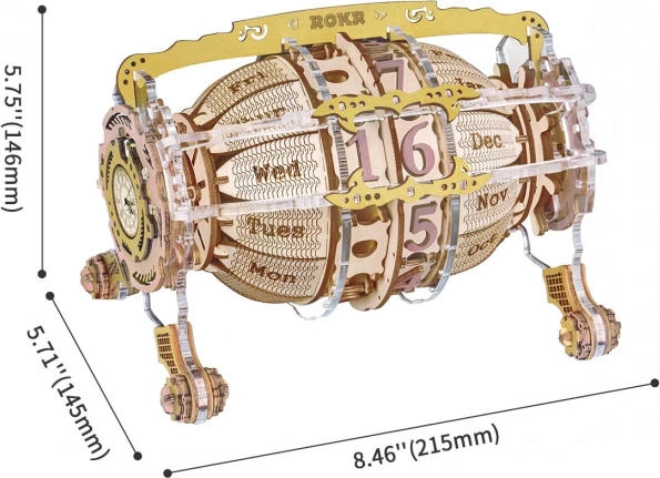 Calendar proiectat frumos cu mecanisme pe care le poți asambla singur. Sunt ceasuri reale care indică timpul exact. Dacă îți place să meșterești, acesta va fi alegerea ideală pentru colecțiile tale. Va fi o provocare pentru tine!