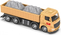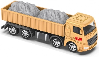 Basculantă robustă cu spațiu de încărcare lung, deschis, și imitație de agregate sprijină joaca pe șantier. Cabina detaliată, multiplele axe și roțile lucioase sporesc realismul și distracția.