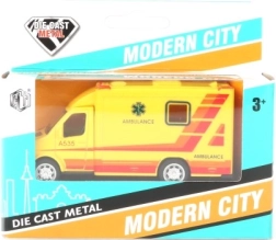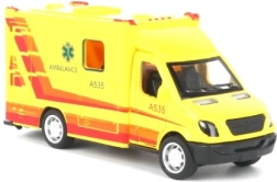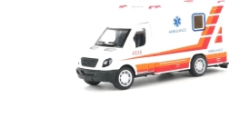 Ambulanță cu uși care se pot deschide și funcție pull back – trage înapoi și pornește.
