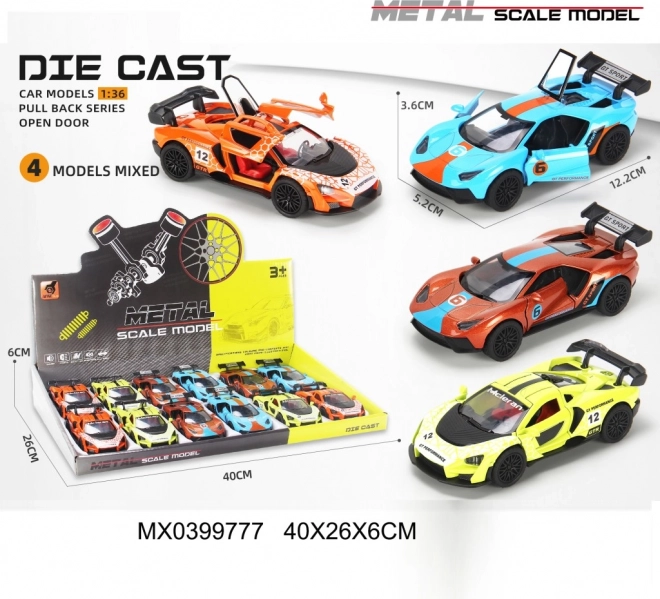 Bucură-te de distracție rapidă cu mașinuța de curse metalică la scară 1:36. Modelul oferă uși care se deschid, construcție metalică de calitate și îndrăgita funcție pull back – trage înapoi și pornește. Sunt disponibile 4 designuri atractive pentru și mai multă distracție și entuziasm de colecționare.