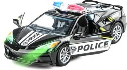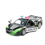 Mașinuța de poliție metalică realistă la scară 1:32 încântă atât micii, cât și marii fani ai vehiculelor de intervenție. Oferă uși care se deschid, funcție pull back – tragi înapoi și pornești și un atractiv efect luminos. Sunt disponibile 2 designuri diferite.