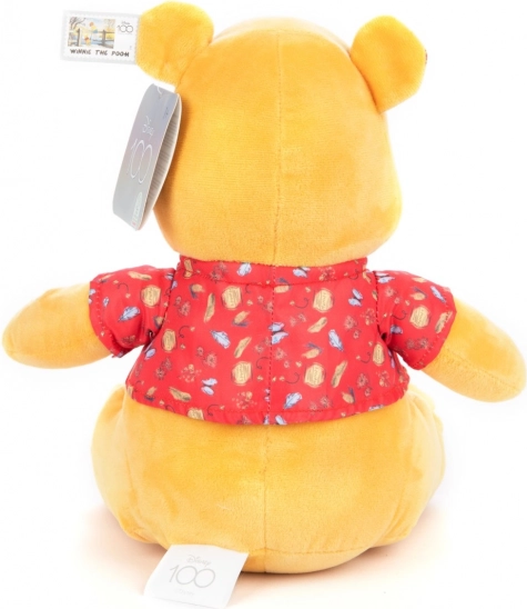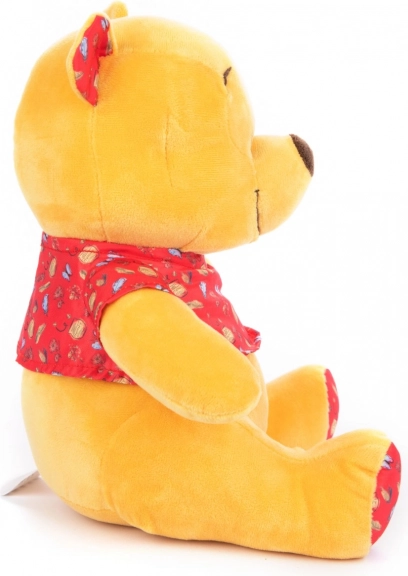 Ursulețul Winnie este fabricat din pluș moale galben și poartă un tricou roșu cu un model decorativ, fiind un însoțitor ideal pentru îmbrățișări.