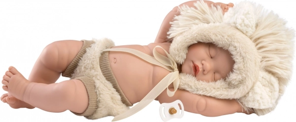 Această păpușă adormită realistă este ideală pentru copii care doresc să experimenteze îngrijirea unui bebeluș. Cu un corp complet din vinil, păpușa poate fi îmbăiată, iar designul său surprinde fiecare detaliu al corpului bebelușului, inclusiv drăgălașii colăcei. Păpușa are mâini și picioare articulate, permițând o așezare flexibilă. Un suzetă este inclusă în pachet ca un accesoriu stilat. Această păpușă este fabricată manual în Spania și este ambalată într-o cutie de cadou frumoasă.
