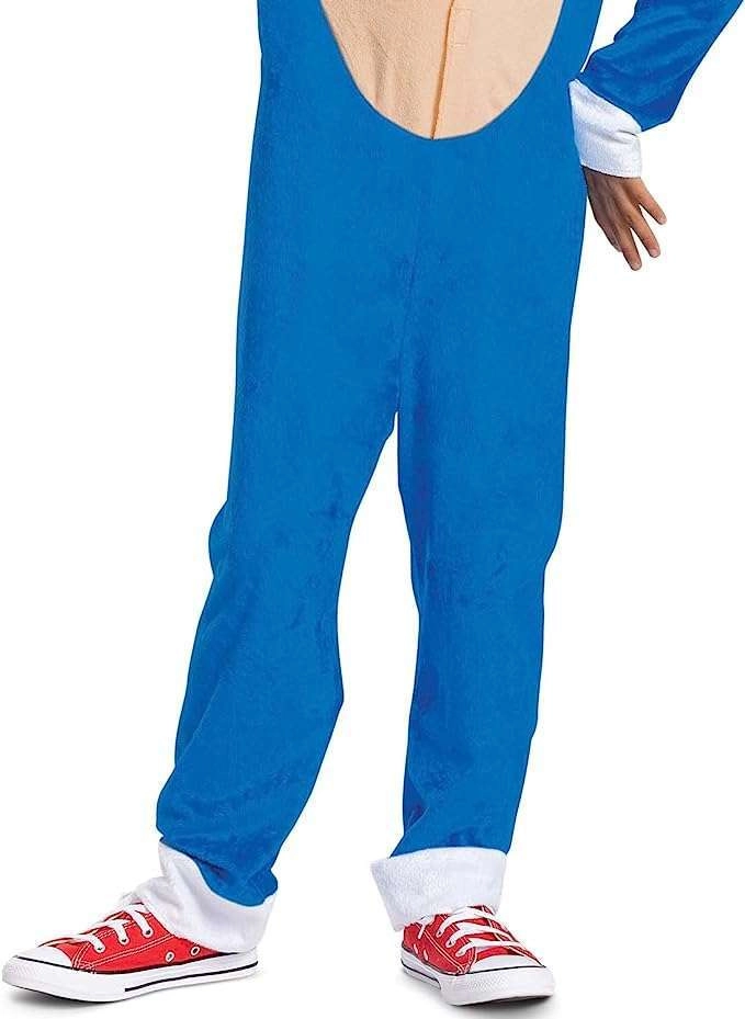 Acest costum albastru pentru copii SONIC este conceput pentru a fi confortabil, ușor de îmbrăcat și pentru a reda fidel personajul îndrăgit din jocuri și animații. Gluga cu ochi, urechi și țepi, panoul bej pe abdomen și manșetele albe oferă un aspect autentic.