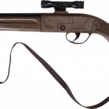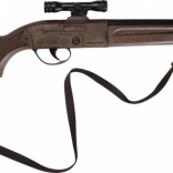 Combinația dintre patul maro și țeava neagră cu imitație de lunetă oferă jucăriei un stil cowboy autentic.
