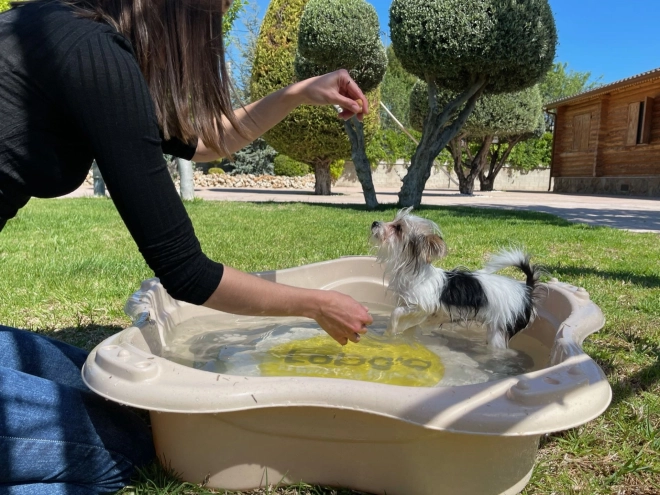 Această piscină spațioasă pentru animale de companie este ideală pentru baie igienică și răcorire estivală în curte. Structura ușoară, dar robustă, din material îmbogățit cu coji de migdale asigură o durată de viață mai lungă și o amprentă ecologică redusă. Decorul rezistent la apă și la radiații UV este aplicat prin tehnologia IML, astfel încât nu se decojește și nu se estompează.