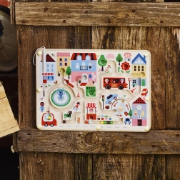 Labirintul magnetic încurajează imaginația copiilor și gândirea creativă prin conducerea bilelor prin oraș.
