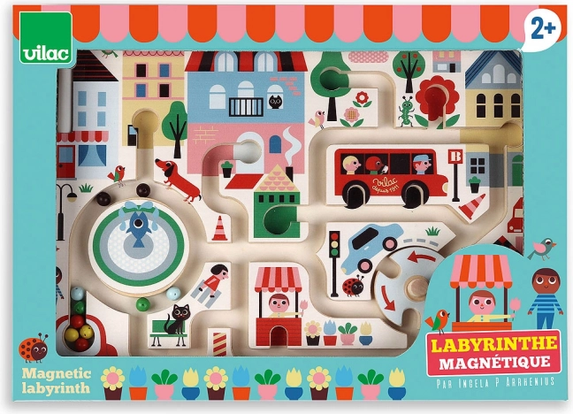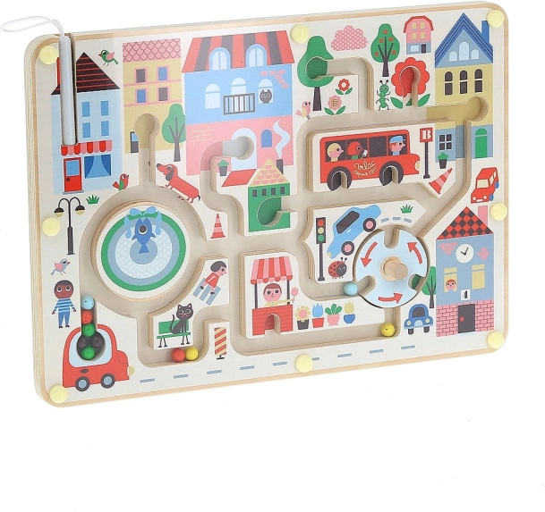 Intrați într-o lume plină de culori și fantezie cu jocul Labirint magnetic Orașul meu. Folosește pixul magnetic pentru a ghida bilele colorate prin oraș și dezvoltă astfel abilitățile motorii fine ale copilului tău. Jucărie din lemn, care nu este doar un instrument pentru învățare veselă, dar ajută și la extinderea vocabularului copilului.