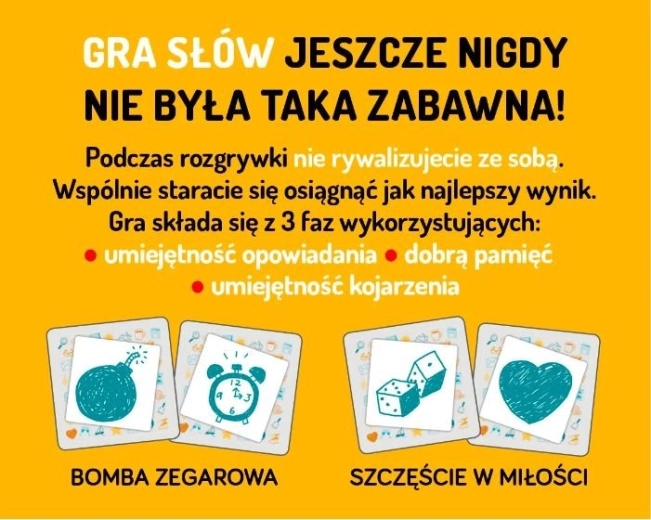 În acest joc nu concurați unii împotriva altora! Împreună încercați să obțineți cel mai bun scor posibil. Jocul este împărțit în 3 părți, în care veți folosi povestirea, abilitățile de asociere și o bună memorie.