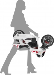 Mânerul integrat în partea inferioară permite părinților să transporte comod bicicleta fără pedale, atât în parc, cât și pe scări.