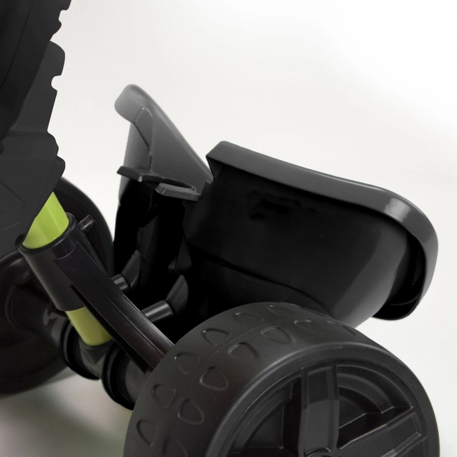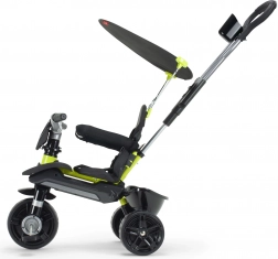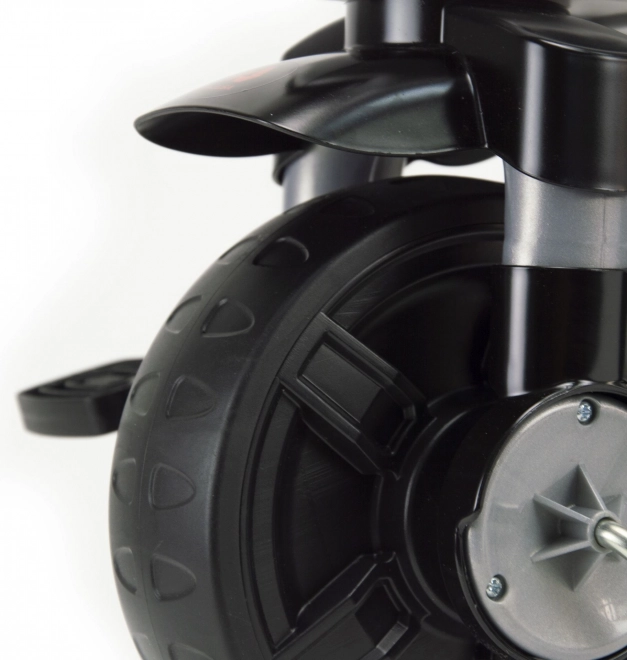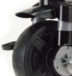 Tricicleta este echipată cu un cadru metalic stabil, roți cauciucate și arc de protecție, ceea ce asigură siguranță la mers.