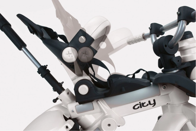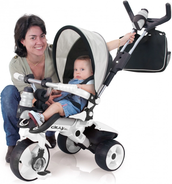Tricicleta City Max garantează o plimbare de calitate și fără griji pentru copilul dumneavoastră încă din primele luni. Cu o construcție metalică și roți cauciucate, tricicleta se manevrează ușor și este foarte silențioasă. Crește odată cu copilul și se adaptează nevoilor acestuia – de la cărucior pentru cei mai mici până la control independent pentru copiii mai mari.
