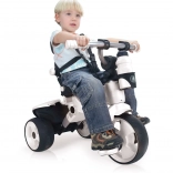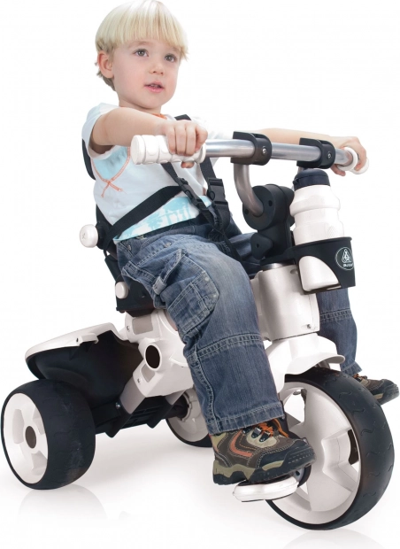 Pedalele pot fi setate pe fix sau pe rulare liberă, iar după îndepărtarea tuturor elementelor de protecție copilul poate controla tricicleta în totalitate singur.