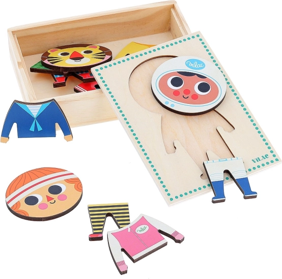 Vilac puzzle îmbrăcăminte Jules oferă posibilități nelimitate de combinare a ținutelor pentru copii. Cu 6 ținute diferite, micii creatori pot realiza creații de modă unice și surprinzătoare!