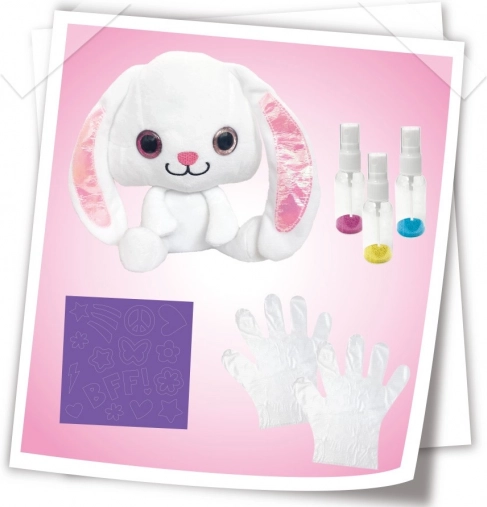 Acest set creativ oferă tot ce au nevoie copiii pentru a-și colora și decora propria mascotă de pluș în forma unui iepuraș. Datorită vopselelor în pulverizatoare practice, decorarea este simplă și distractivă, iar autocolantele oferă mascotei finite un stil personal.