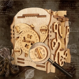 Intră în lumea căpitanului Nemo și a legendarului său Nautilus. Acest puzzle mecanic ingenios îmbină măiestria artizanală cu o poveste captivantă care îți va testa răbdarea și istețimea. În interior se află un ascunziș secret (cca 2 × 2 × 4 cm), ideal pentru bani, o bijuterie sau o mică surpriză.