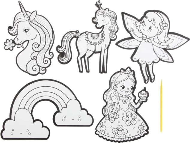 Folosiți stiloul zgâriabil inclus pentru a dezvălui magia colorată de sub fiecare imagine.