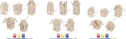 Setul include toate uneltele necesare – lemn pre-tăiat, vopsele și pensulă, ceea ce permite crearea imediată fără necesitatea altor accesorii.