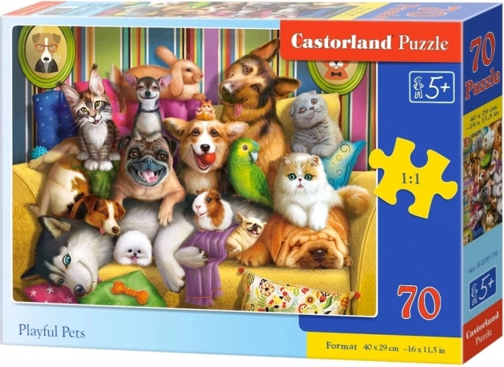 Descoperă lumea colorată a prietenilor necuvântători cu puzzle-ul CASTORLAND – Playful Pets. Carton de calitate, decupaje precise și culori intense care fac asamblarea atât distractivă, cât și educativă. Cadoul ideal pentru copiii care iubesc câinii, pisicile și alte animăluțe de companie.