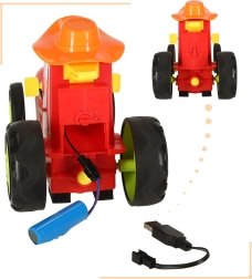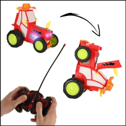 Descoperă un tractor atipic care, în loc să meargă lin, saltă și se zbenguIește. Melodiile vesele și designul jucăuș, cu pălărie și roți mari, atrag imediat atenția copiilor. Controlul ușor prin cele două joystick-uri de pe telecomandă permite deplasarea în toate direcțiile și o mulțime de trucuri amuzante.