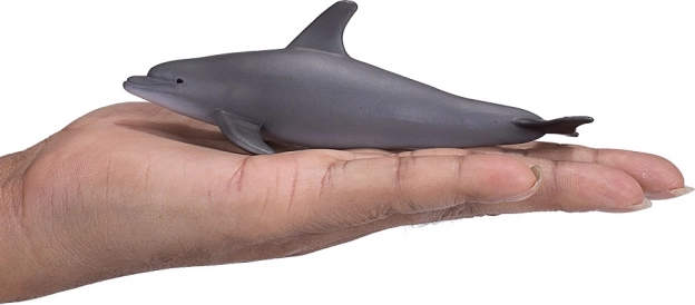 Modelul reproduce fidel forma și coloritul delfinului Tursiops, sprijinind cunoașterea viețuitoarelor marine și jocul cu imaginație.