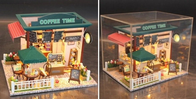 Descoperă farmecul miniaturilor cu setul detaliat al cafenelei Coffee Time. Construiește un colțișor fermecător cu echipare realistă, iluminare LED și un bogat set de accesorii pentru asamblare. Ideal pentru relaxare, dezvoltarea motricității fine, a răbdării și a simțului estetic – modelul final va deveni o decorațiune stilată pentru interiorul tău.