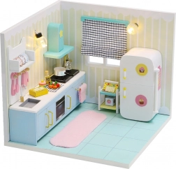 Această miniatură a căsuței Bucătăria veselă readuce la viață simțul dumneavoastră artistic și constructiv prin detaliile sale fermecătoare. Fiecare kit vine în stare dezasamblată și este dotat cu iluminat LED, care necesită două baterii AAA (nu sunt incluse). Datorită protecției din plexiglas, aveți siguranța că creația dumneavoastră va fi în siguranță.