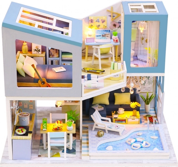Vă prezentăm fascinantul set de construcție al căsuței miniaturale Vila Primei Întâlniri. Acest set unic oferă ore de distracție prin asamblare, lipire și ajustare, rezultatul fiind un model frumos care va deveni o decorație originală pentru locuința dumneavoastră. Fiecare set este livrat neasamblat cu iluminare LED, care oferă vilei dumneavoastră miniaturale un aspect realist. Ambalajul conține toate componentele necesare și unelte practice cum ar fi lipici, riglă și pensetă pentru o asamblare ușoară.