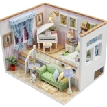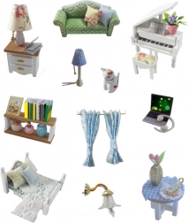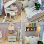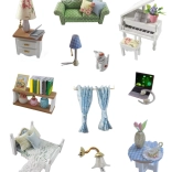 Construiește propriul interior miniatural, plin de detalii realiste – o canapea confortabilă cu pernuțe, un pian elegant, pat cu textile, lămpi, rafturi și decorațiuni delicate. Iluminarea LED integrată conferă scenei o atmosferă caldă și transformă creația ta într-o piesă decorativă unică pentru etajeră sau birou.