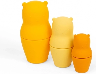 Adorabilii ursuleți matrioșka din silicon îmbină o jucărie de dezvoltare distractivă și un inel de dentiție practic într-un singur produs. Sunt moale și flexibili, realizați din 100% silicon de calitate alimentară, care este netoxic, ușor de curățat și rezistent la bacterii și pete. Ideali pentru copii de la 1 an și o decorare frumoasă pentru camera copilului.