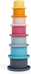 Siliconul 100% fără plastic este moale pentru mâinile copiilor, dar foarte rezistent la temperaturi și pete. Întreținere ușoară – e suficientă apă caldă și săpun delicat sau mașina de spălat vase. Jocul cu paharele sprijină abilitățile motorii, percepția senzorială, echilibrul și primele forme de gândire logică.