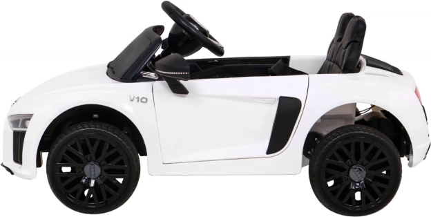 - Distracție și stil: lumini LED, panou audio, design realist AUDI R8.