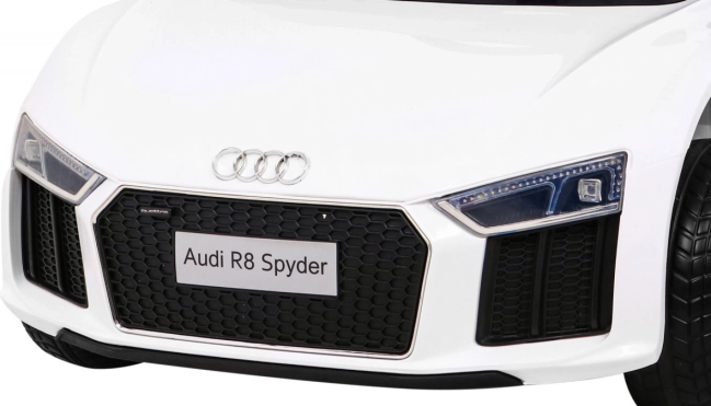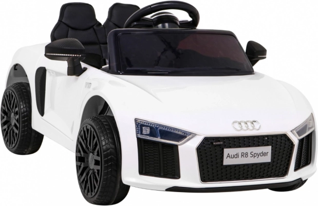 Plimbare sport pentru micii șoferi în stilul iconic AUDI R8 Spyder. Mașinuța este propulsată de două motoare de 35 W și alimentată de două baterii de 6 V/4,5 Ah, astfel încât se descurcă pe suprafețe dure și pe aleile din grădină. Pornirea lină (Soft Start) protejează copilul de smucituri, iar suspensia față și spate crește confortul.