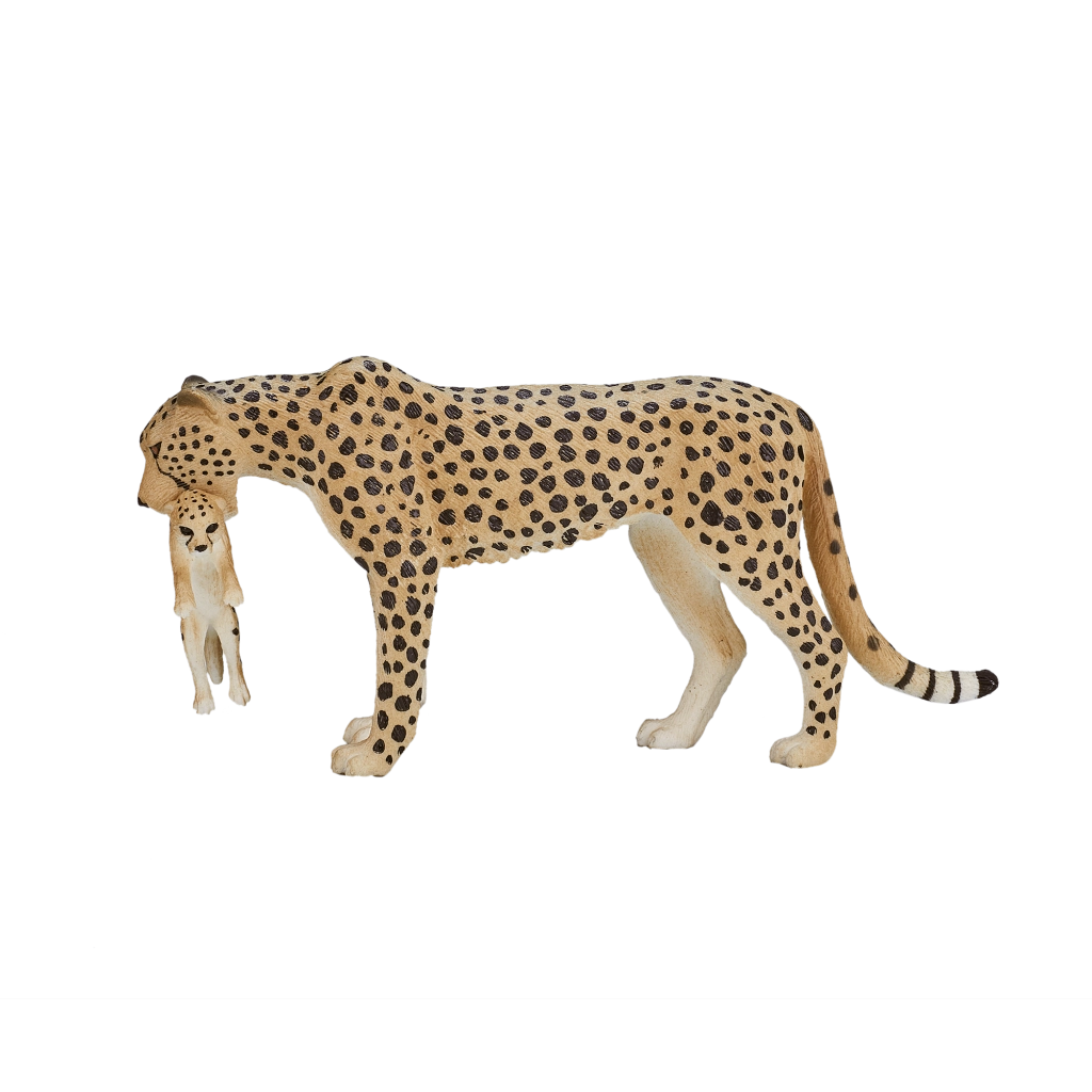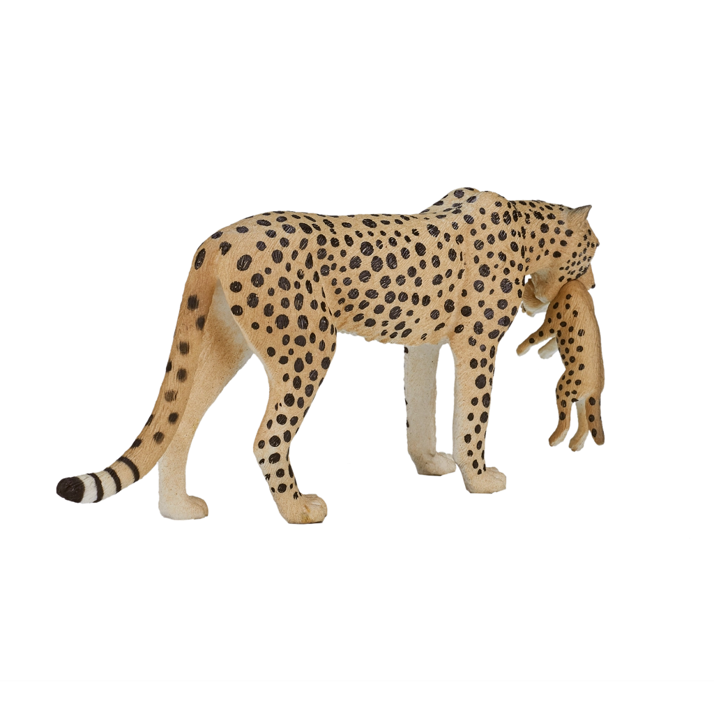 Figurina realistă de ghepard cu pui de la Mojo îi va încânta pe copii și pe colecționari. Se remarcă prin detalii fidele, execuție de calitate și plastic durabil, sigur pentru sănătate. Ideală pentru joacă, învățare și colecții, livrată într-un punguț transparent. Mărime: extra mare.