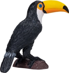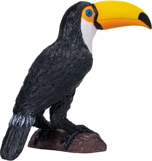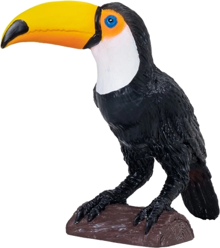 Figurina tucan este realizată fidel cu accent pe textura detaliată și culori.