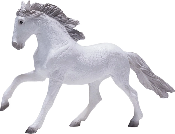 Mojo Cal Lusitan alb este o figurină de plastic elegantă și detaliată, ce reprezintă unul dintre cei mai iconici cai. Detaliile sale fine, precum coama fluidă și poziția realistă, contribuie la autenticitatea sa.