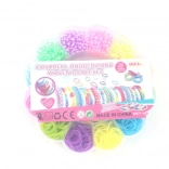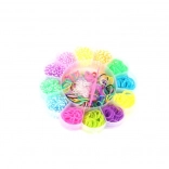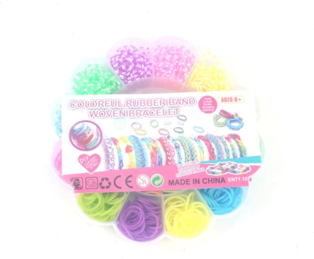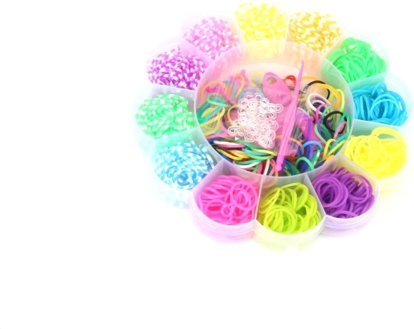 Set creativ pentru mici și mari creatori: 900 buc. elastice colorate într-o cutie în formă de floare, completate cu mini război de țesut manual, croșetă și cleme de prindere. Creați brățări, brelocuri și decorațiuni originale din elastice, dezvoltați îndemânarea și bucurați‑vă de ore întregi de distracție.