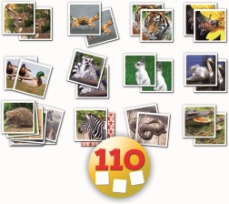 Distracție de familie cu pexeso care conține 110 carduri cu fotografii ale animalelor din natură. Ideal pentru antrenamentul memoriei copiilor și adulților.