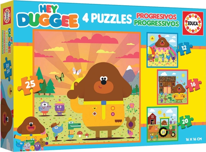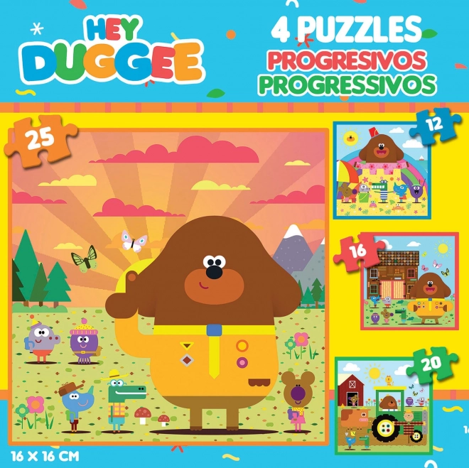 Aceste puzzle-uri sunt ideale pentru copiii care doresc să se bucure de o provocare distractivă cu personajele lor preferate din Hey Duggee. Acestea includ patru puzzle-uri diferite, care cresc progresiv în dificultate:
