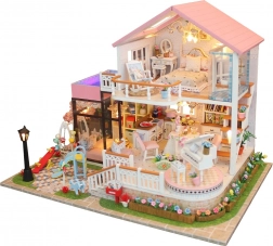 Vilă pe două niveluri, cu dormitor, living și bucătărie în culori delicate, încântă prin dotările bogate și accesoriile realiste.