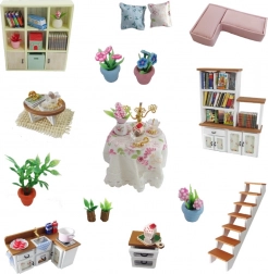 Această miniatură elegantă de căsuță oferă interioare bogat echipate – dormitor, zonă de living și bucătărie – și o zonă exterioară cu loc de joacă. Datorită detaliilor realizate cu precizie, mobilierului și accesoriilor veți crea o scenă impresionantă pentru expunere și joc imaginativ. Iluminarea LED instalată conferă serilor o atmosferă confortabilă (2× AAA nu sunt incluse).