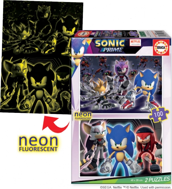 Descoperiți lumea magiei și distracției cu puzzle-urile fluorescente Sonic Prime de la Educa. Acest set conține două puzzle-uri cu aceleași dimensiuni și număr de piese: