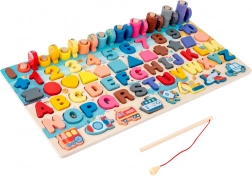 Tabla multifuncțională din lemn oferă un joc educativ ce combină distracția cu învățarea. Scopul jocului este să îi învețe pe copii să recunoască numerele, formele și culorile prin elemente interactive.