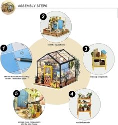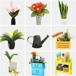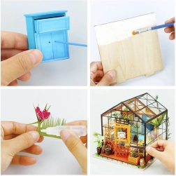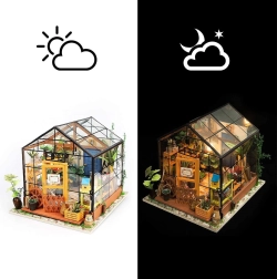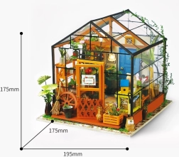 Descoperă farmecul miniaturilor cu modelul Robotime Mini Seră. În cutie găsești piese predecupate din placaj, imprimeuri pe hârtie, elemente textile și metalice, care după vopsire și lipire vor crea o seră spectaculoasă plină de plante și accesorii de grădină. Iluminarea LED oferă modelului final o atmosferă caldă și primitoare.