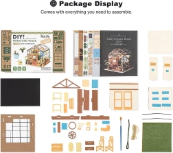Miniatura de seră de la ROBOTIME este un set de construcție artistic detaliat, cu care vei petrece momente plăcute de creație și vei realiza o decorațiune primitoare cu iluminare LED. Pachetul conține tot ce ai nevoie pentru asamblare – adeziv, vopsele, pensulă și unelte mici. Modelul se remarcă prin detalii bogate, aspect realist și un experiență relaxantă de construcție.
